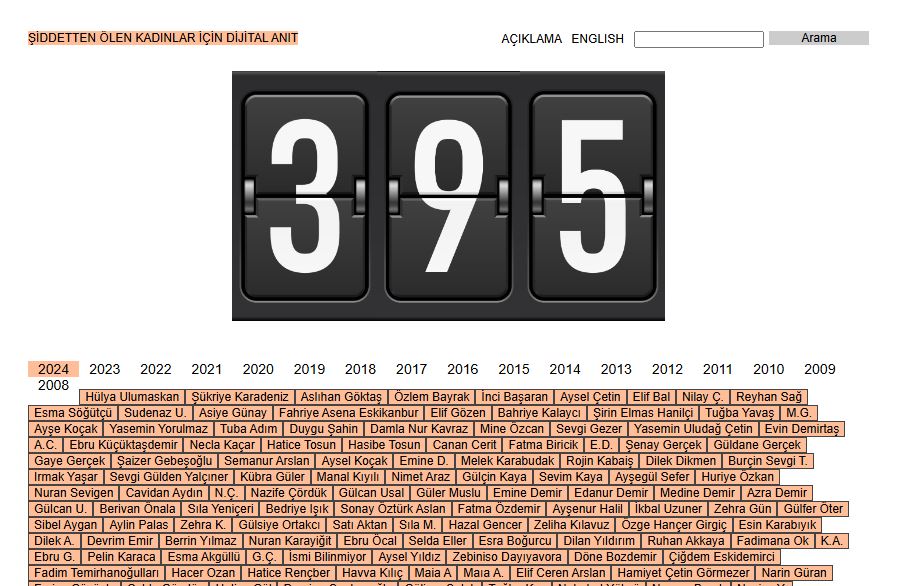 Bu web sitesi kadın cinayetlerinde hayatını kaybeden kadınlarımız için hazırlanmış olup yıllık bazda isimleri paylaşılmaktadır. İsme dokunduğunuzda, hikayesi ve ölüm şekli ile ilgili basın haber bilgilerine ulaşılmaktadır.